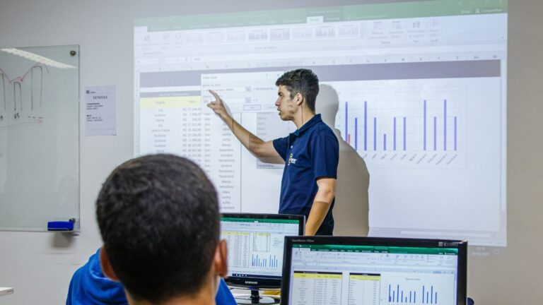 Aprenda, em uma única formação, Excel e Power BI presencialmente, com acompanhamento de perto e foco total na prática. Uma metodologia validada por mais de 10.000 alunos, com até 3 instrutores em sala, feita para você dominar as ferramentas mais exigidas nas empresas.