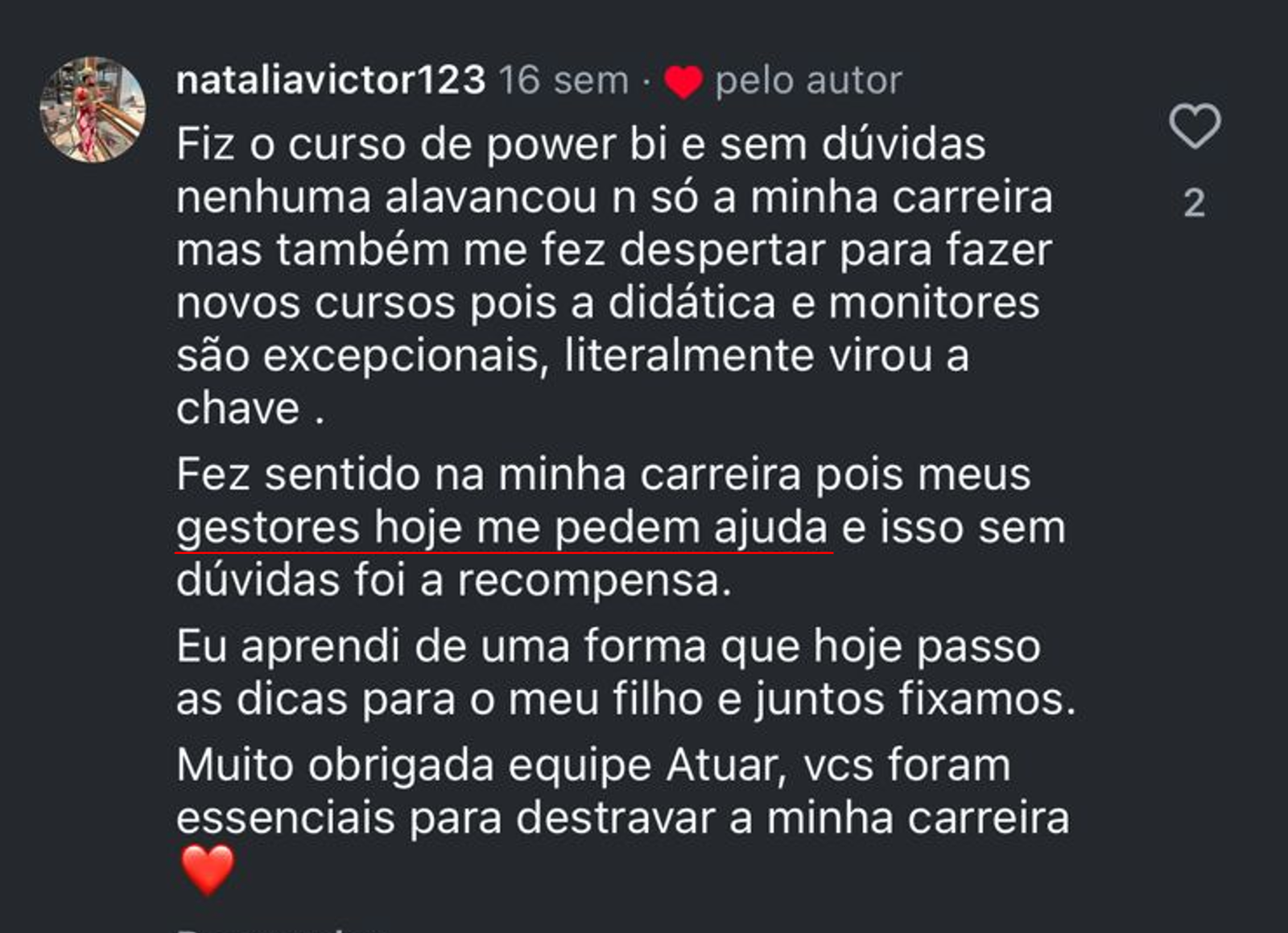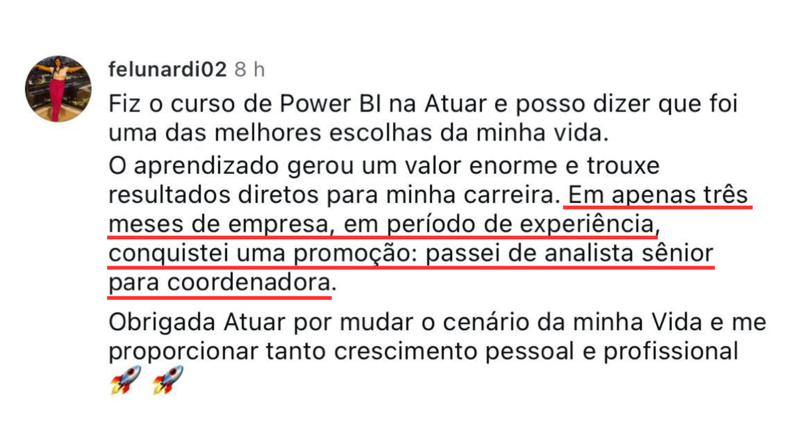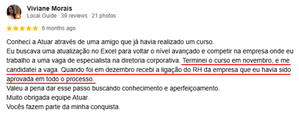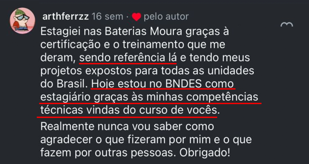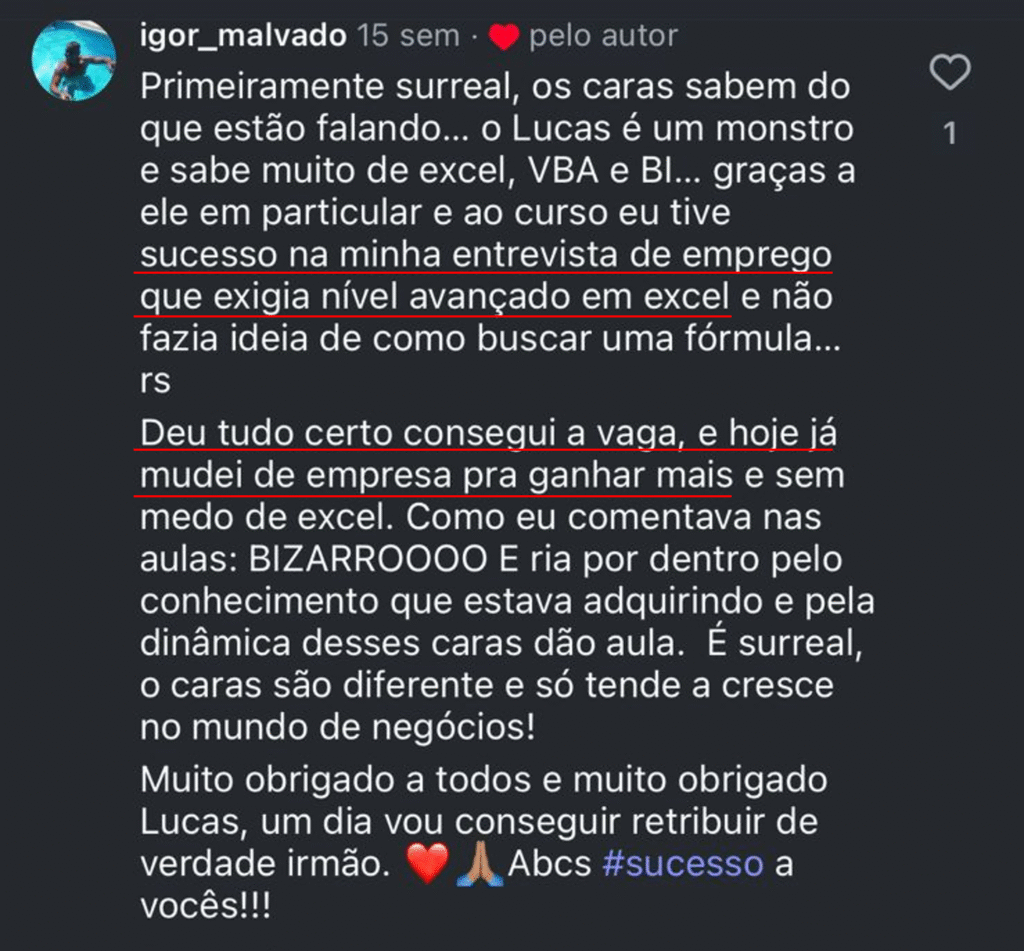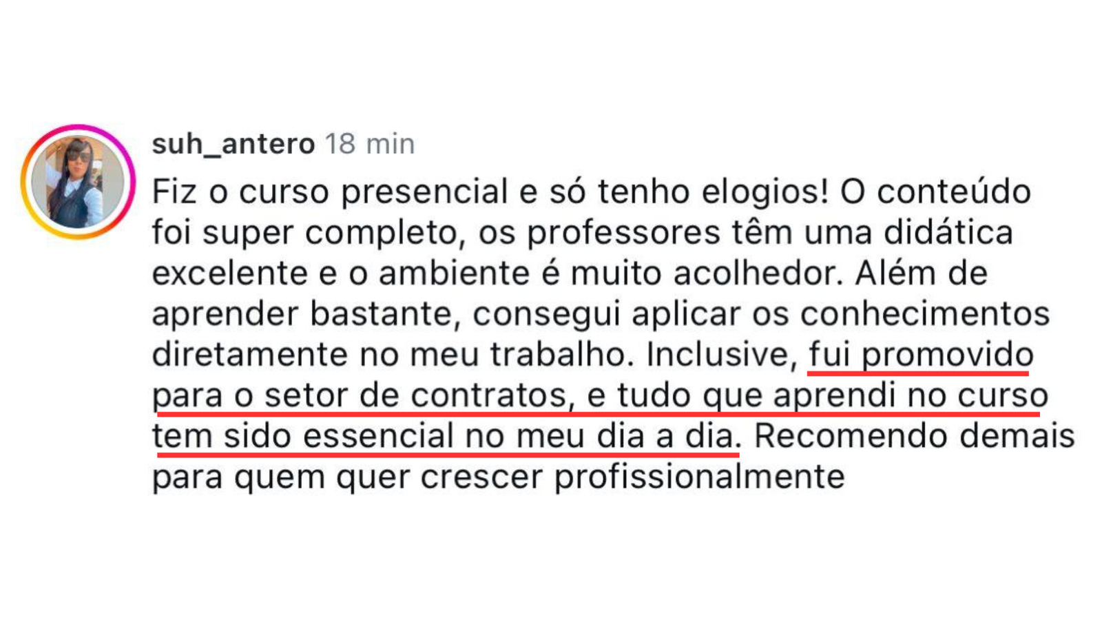 Ganhar mais, trocar de área, ser aprovado em processo seletivo: esses são alguns dos resultados que nossos alunos tiveram ao adquirir nosso treinameno completo. Veja abaixo: