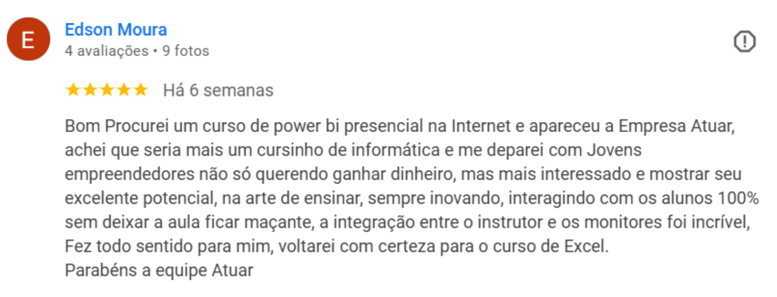 A Atuar Cursos é uma empresa que possui como propósito democratizar o acesso ao ensino de ferramentas computacionais no Brasil. Através de uma metodologia educacional prática e objetiva, plataforma intuitiva e explicação didática, a Atuar realiza cursos, treinamentos e parcerias envolvendo o Excel, VBA e o Power BI.