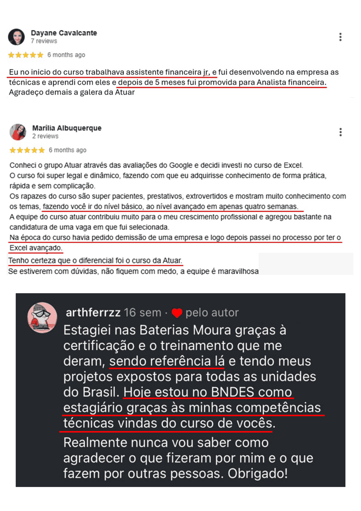 O que nossos alunos falam dosnossos treinamentos: